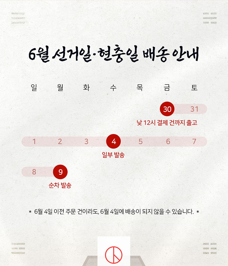 <2025³â 6¿ù ¼±°ÅÀÏ ¹× ÇöÃæÀÏ ¹è¼Û ÈÞ¹«> ¾È³»µå¸³´Ï´Ù.